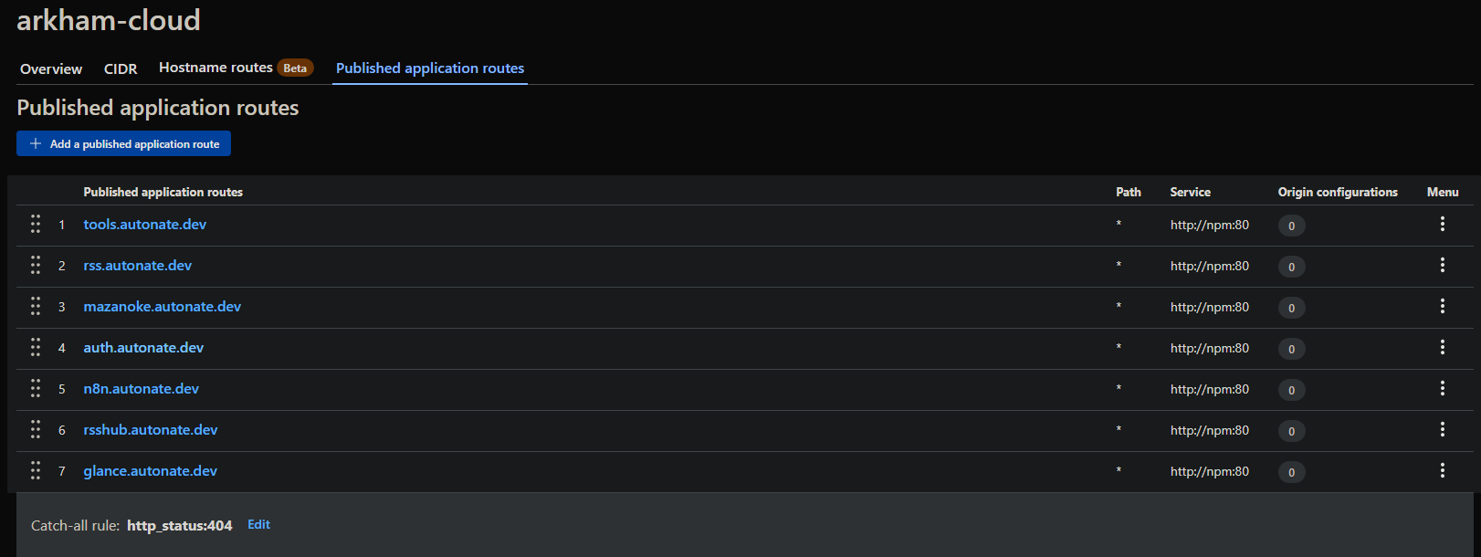 For services I want to access outside my Tailnet, I combine Nginx Proxy Manager (NPM) with Cloudflare Tunnels.