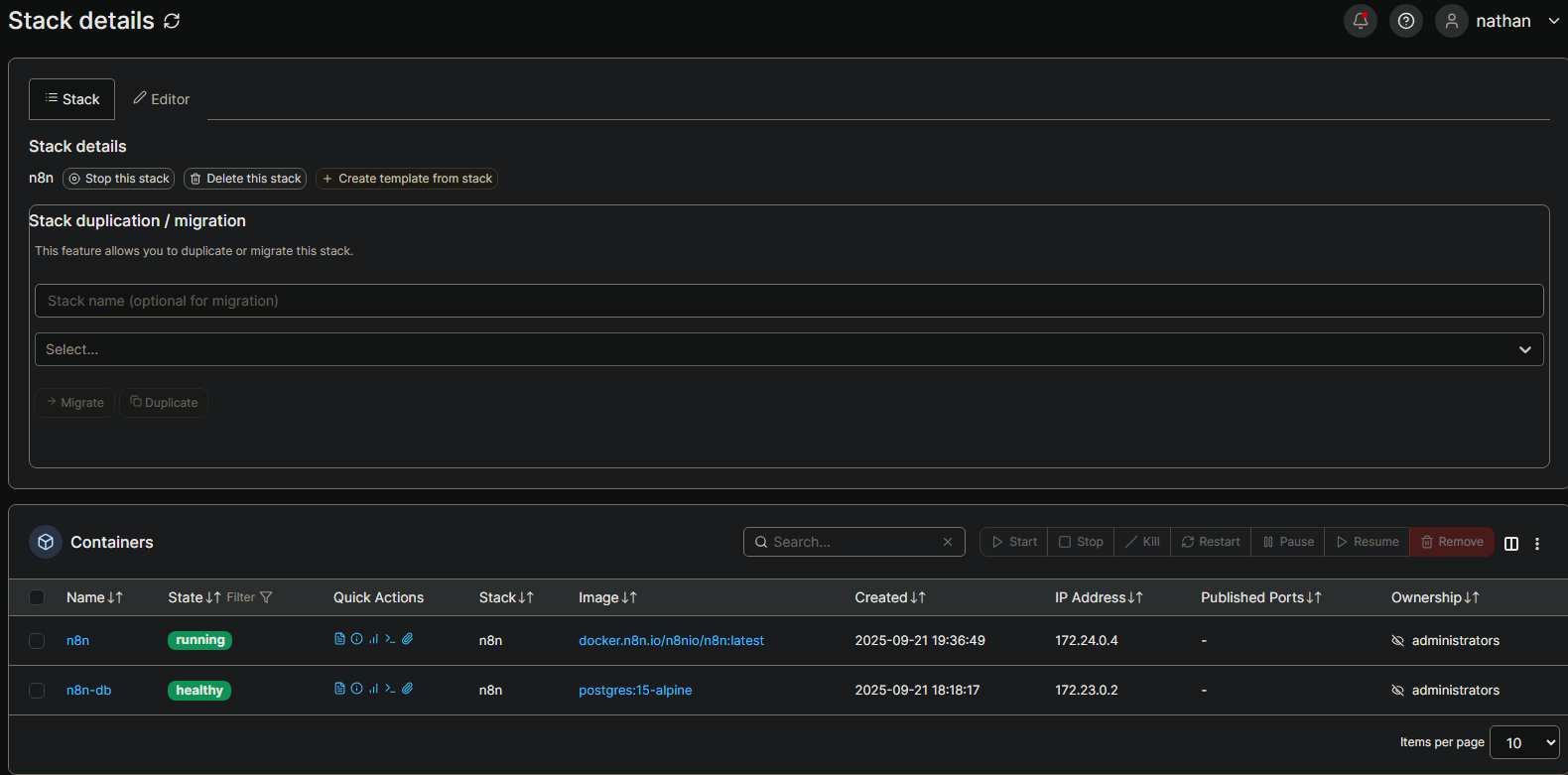 With plenty of spare resources in my homelab, running n8n on my VPS was an obvious choice. I deployed it via Portainer and tweaked the stack configuration to suit my setup.